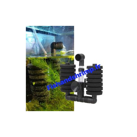 Filtre exhausteur, très efficace pour la dissolution de l'oxygène dans l'eau et la filtration des aquariums d'alevins ou de crevettes.