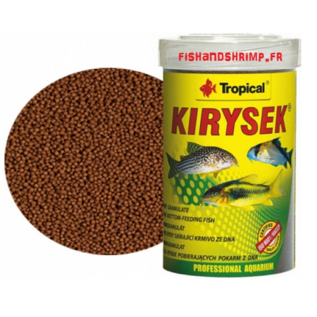KIRYSEK est une nourriture complète sous forme de petites granules descendant lentement pour l'alimentation quotidienne de Corydoras et autres poissons-chat de petite taille, Botia et loches Pangio, et tous autres poissons mangeant dans le fond.