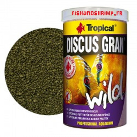 TROPICAL DISCUS GRAN WILD est une nourriture à multi ingrédients sous forme de granules descendant lentement avec addition d'algues, de krill et de fruits, destinée à l'alimentation quotidienne de discus sauvages et d'autres espèces de poissons sauvages aux besoins exigeants.