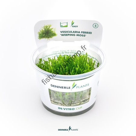 Aucune autre mousse n‘est aussi populaire que la Vesicularia ferriei. Son nom commercial 'Weeping Moos' se réfère aux pousses retombantes de cette attrayante mousse. Idéalement, la mousse est fixée sur des racines ou des roches; avec de petites racines-crampons son enracinement est rapide. Une taille fréquente du coussinet de mousse permet la création de magnifiques designs. Elle peut être utilisée pour la création de petits arbres miniatures en la fixant comme cime d‘arbre sur de petites racines filigranes. Cette magnifique mousse est robuste et demande peu d‘entretien.